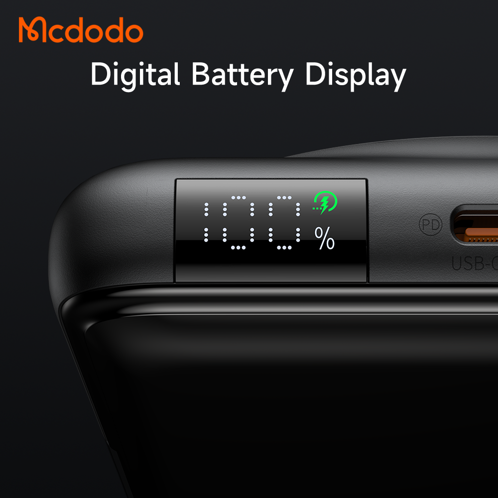 MCDODO MC6320 20W DIGITAL DISPLAY 10000MAH DUAL ZONE MAGNETIC POWER BANK B/N CABLE AND STAND