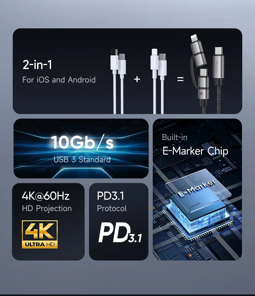 - Mcdodo 2-IN-1 USB 3.1 Gen2 Cable Charging and data transfer cable, as well as 2 in 1 external monitor, support USB 3.1 Gen 2 standard