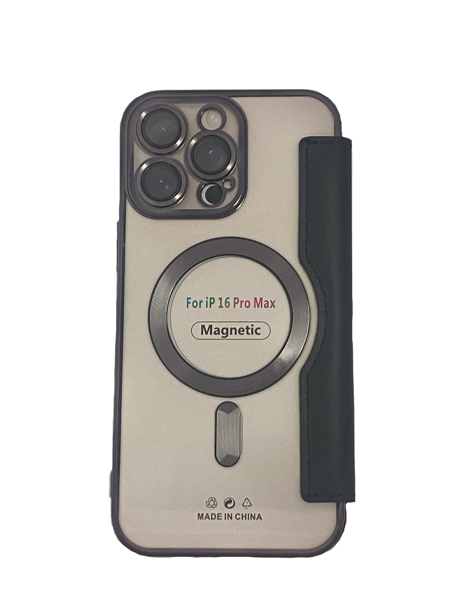 Boomtique Clear Black Magsafe Wallet Case for iPhone 16 Pro Max