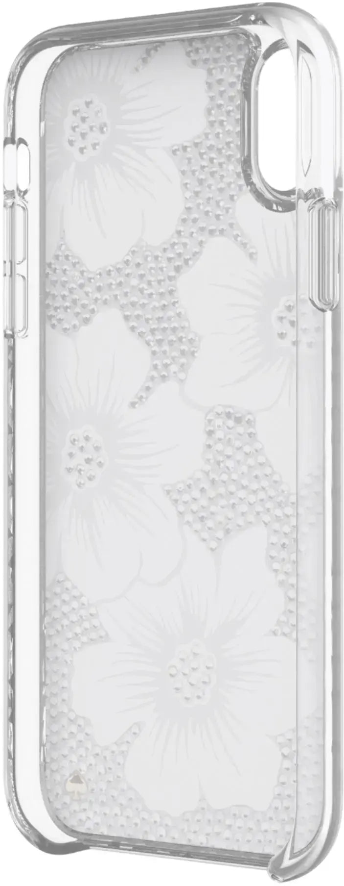 Cushion your phone with this Kate Spade New York Clear Crystal Floral Case. The lightweight design and easy-grip material let you hold your device securely, while the shock-resistant hardshell construction offers lasting protection against accidental drops and bumps. This Kate Spade New York Clear Crystal Floral Case has cutouts that offer access to wireless charging, devise ports and camera.