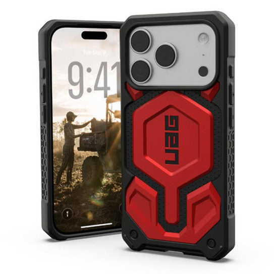 UAG Monarch Pro Crimson Red Vegan Faux Leather Case iPhone 17 Pro